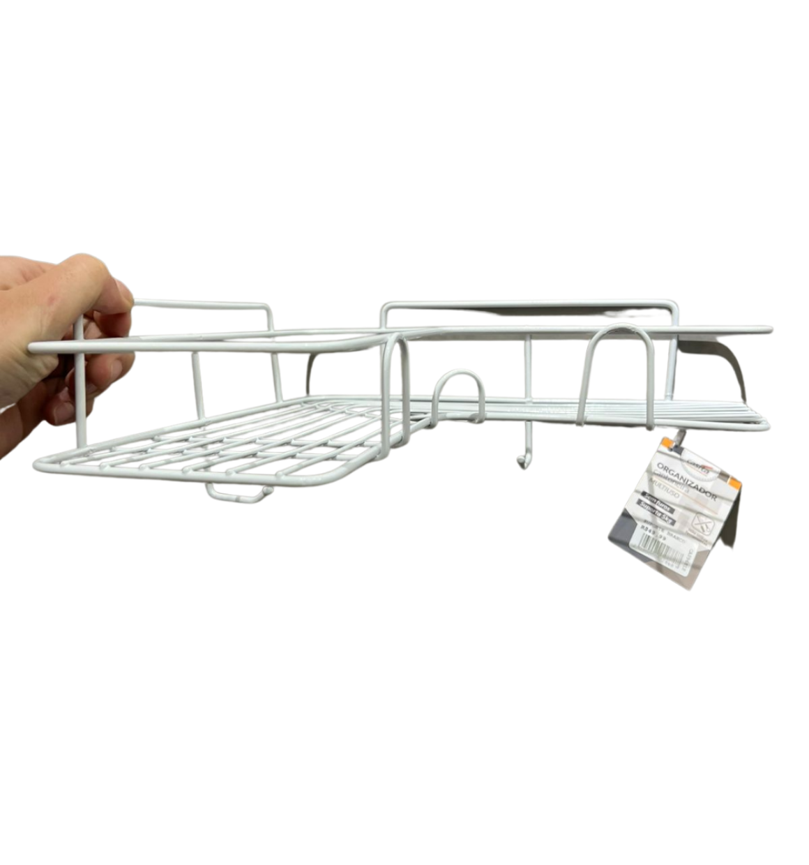 Organize seus materiais de banho como shampoo, condicionador, esponja, cremes e outros acessórios.