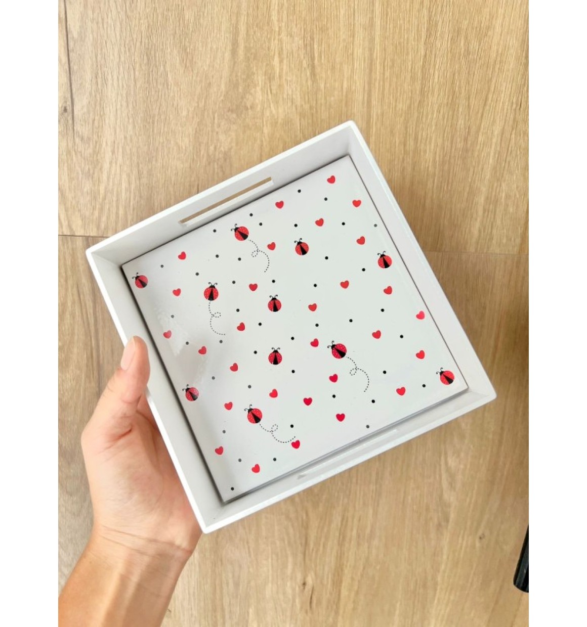 Bandeja em MDF com azulejo, Decorada com Joaninhas fofinhas. Fica uma graça na Decoração Cozinhas. Ótimo Presente para Amigos ou Familiares