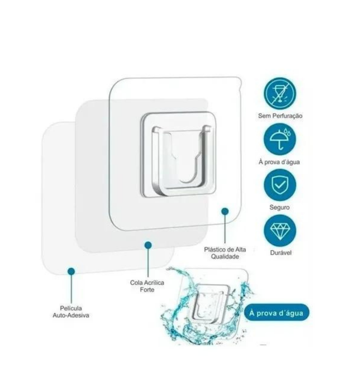 Gancho autoadesivo dupla face ,é versatil e utilitário pode ser fixado na parede e no teto
