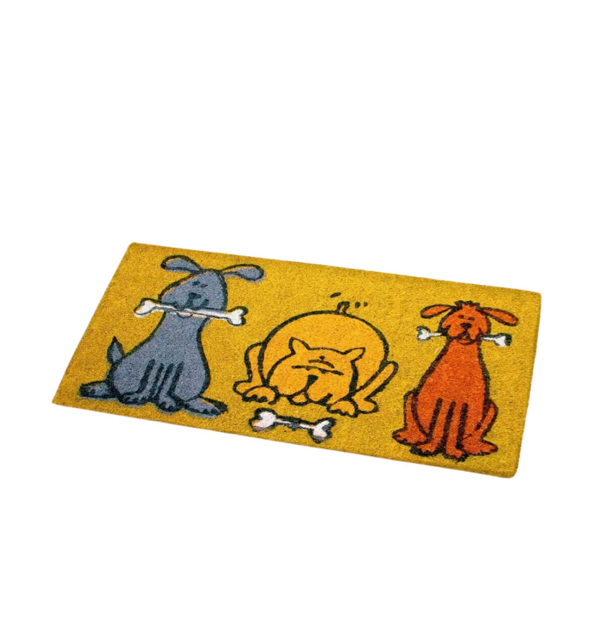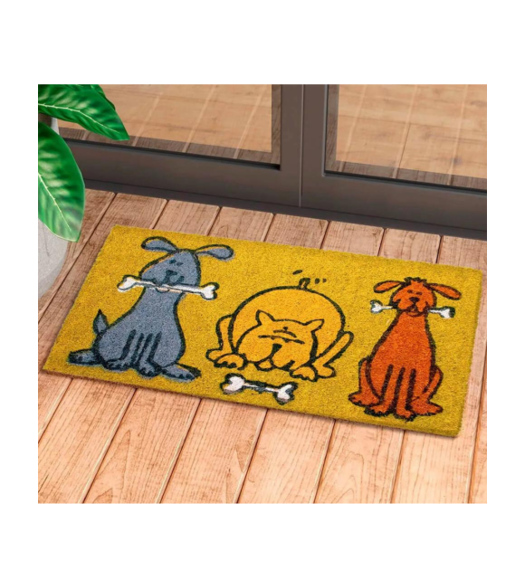 O Capacho 3 Cachorros  apresenta o desenho de três cachorros nas cores azul, amarelo e vermelho, trazendo tons alegres que podem agregar na decoração do seu ambiente externo ou na entrada de sua casa. É feito de fibra de coco o que o torna ecologicamente correto e sua base é emborrachada antiderrapante permitindo o uso em ambientes mais úmidos sem deixar a segurança de lado.
