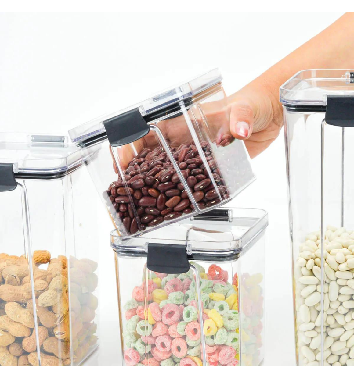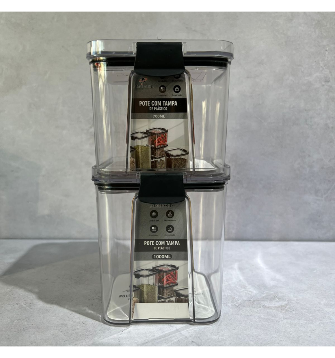 Pote Hermético Quadrado Transparente Com Trava - Preta 700ml Organização Com Estilo, Pote Com Vedação Que Isola Bem E Mantem O Sabor, Aroma E Textura Dos Alimentos Por Muito Mais Tempo, Possui Vedação Com Anel De Silicone E 2 Travas Laterais Que Dão Um Reforço Maior, Pode Ser Usando Para Armazenar Alimentos Secos Como Grãos, Temperos, Biscoitos Como Também Conservas, Molhos Etc., Possui Tampa Que Permite Empilhamento, Deixando Seu Armário Mais Organizando Aproveitando Cada Espaço.