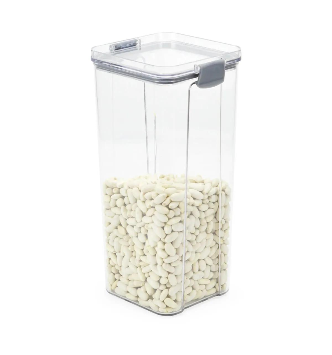 Pote Hermético Quadrado Transparente Com Trava - Cinza 2000ml