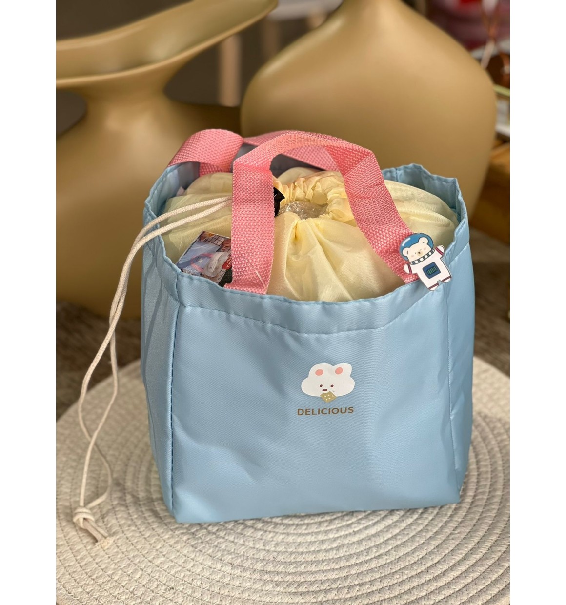 Feito de tecido de poliéster de qualidade superior, bpa livre, mantém sua comida fresca por mais tempo. com forro interior termico.