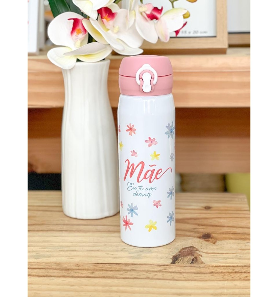 Garrafa de Água Termica "Mãe Eu te amo demais" Mod 1