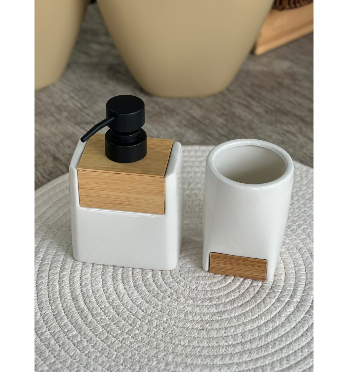 Jogo de Banheiro Branco c/ Detalhe em Bambu - 2 Peças
