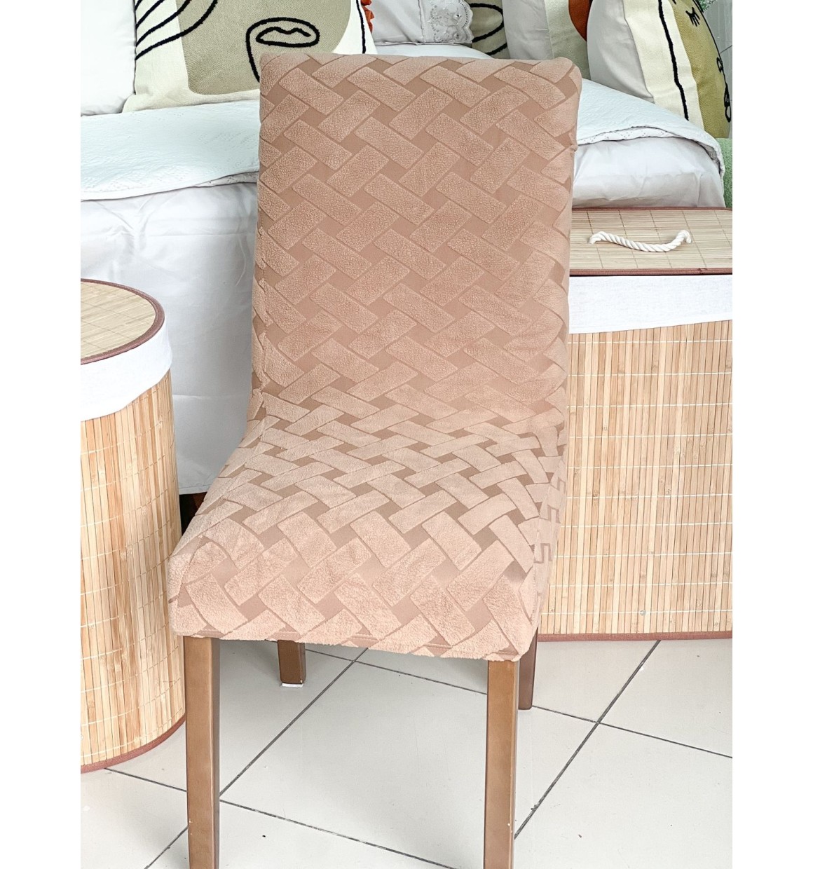 Apresentamos a Capa de Cadeira Marrom, a solução perfeita para dar uma nova vida às suas cadeiras de forma prática e elegante. Feita com tecido de alta qualidade e design trançado exclusivo, essa capa vai transformar sua decoração em um piscar de olhos.