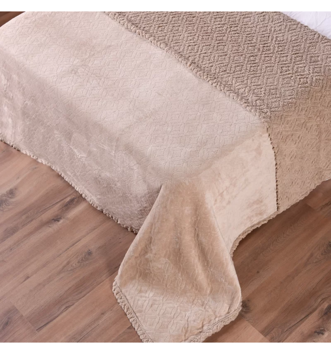 O Cobertor Sherpa foi desenvolvido para proporcionar uma cama super confortável e quentinha! Ele é dupla face, possui um lado com o toque da Microfibra Flannel que é mais macio e aconchegante que as microfibras comuns e o outro lado com o toque especial da sherpa lã de carneiro que garante que você fique aquecido e aconchegante. Além de ser dupla face ele possui o matelassado ultrassônico que fornece lindos desenhos para o cobertor.