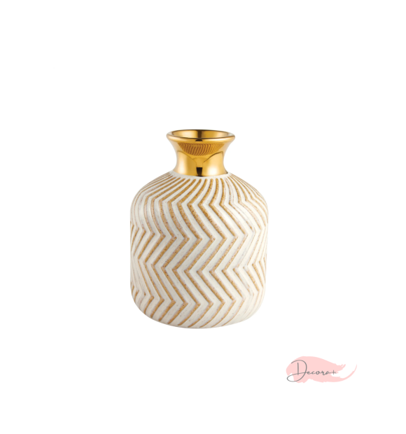 Vaso de Cerâmica Chevron Creme e Dourado Bojudinha Pequeno 9,5cm