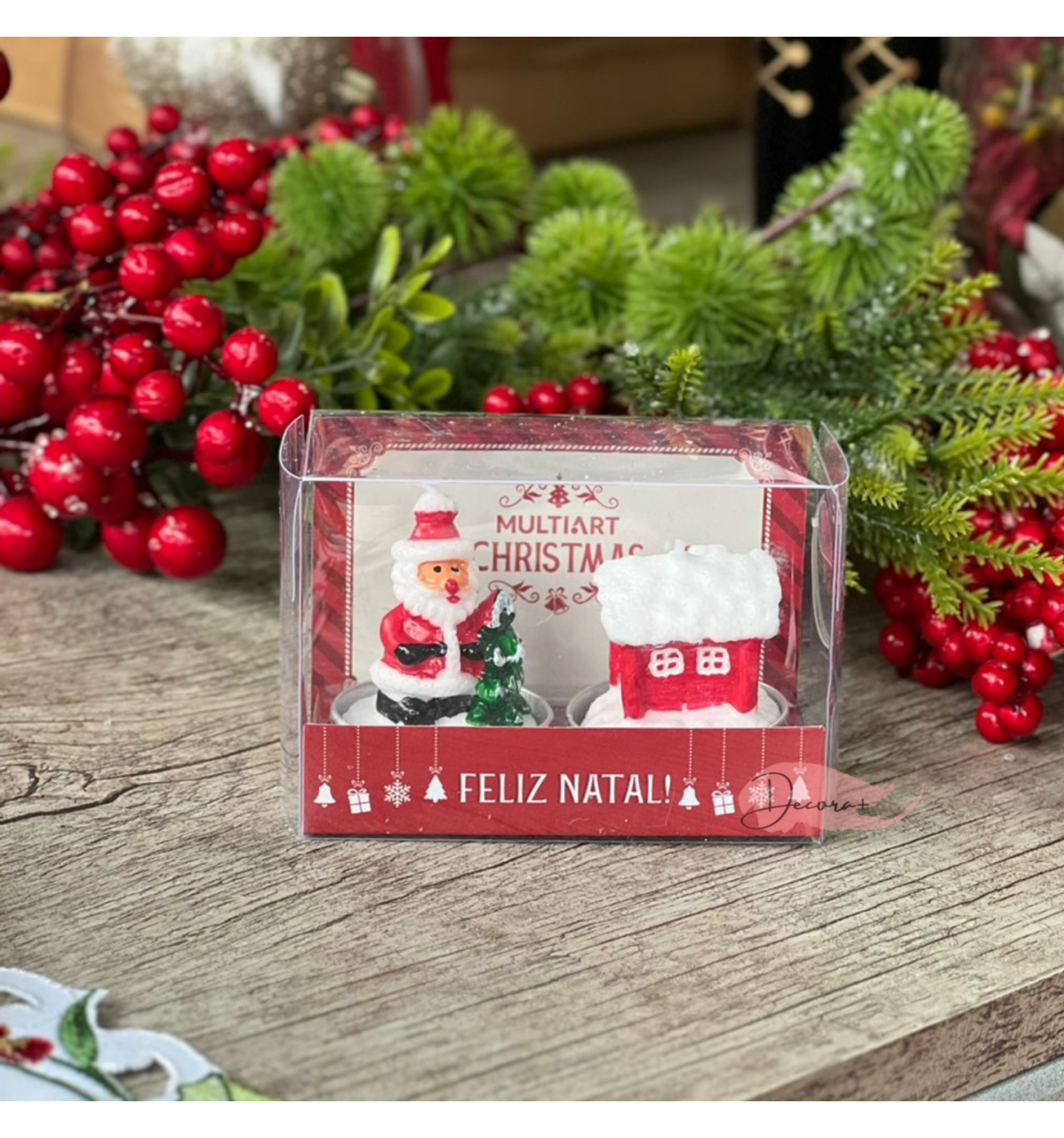 Vela Decorativa De Natal Papai Noel e Casa 6x5cm