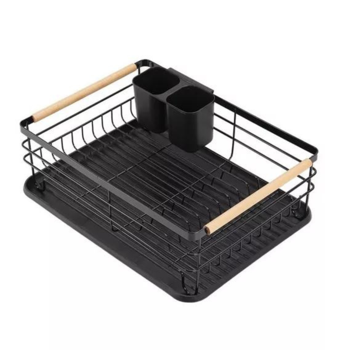 Escorredor de Louças com Porta Talheres e Bandeja - Preto