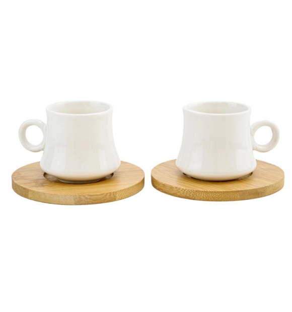 2. Conjunto de Xícaras Porcelana com Pires Bambu Nordic 4 Pçs 80ml