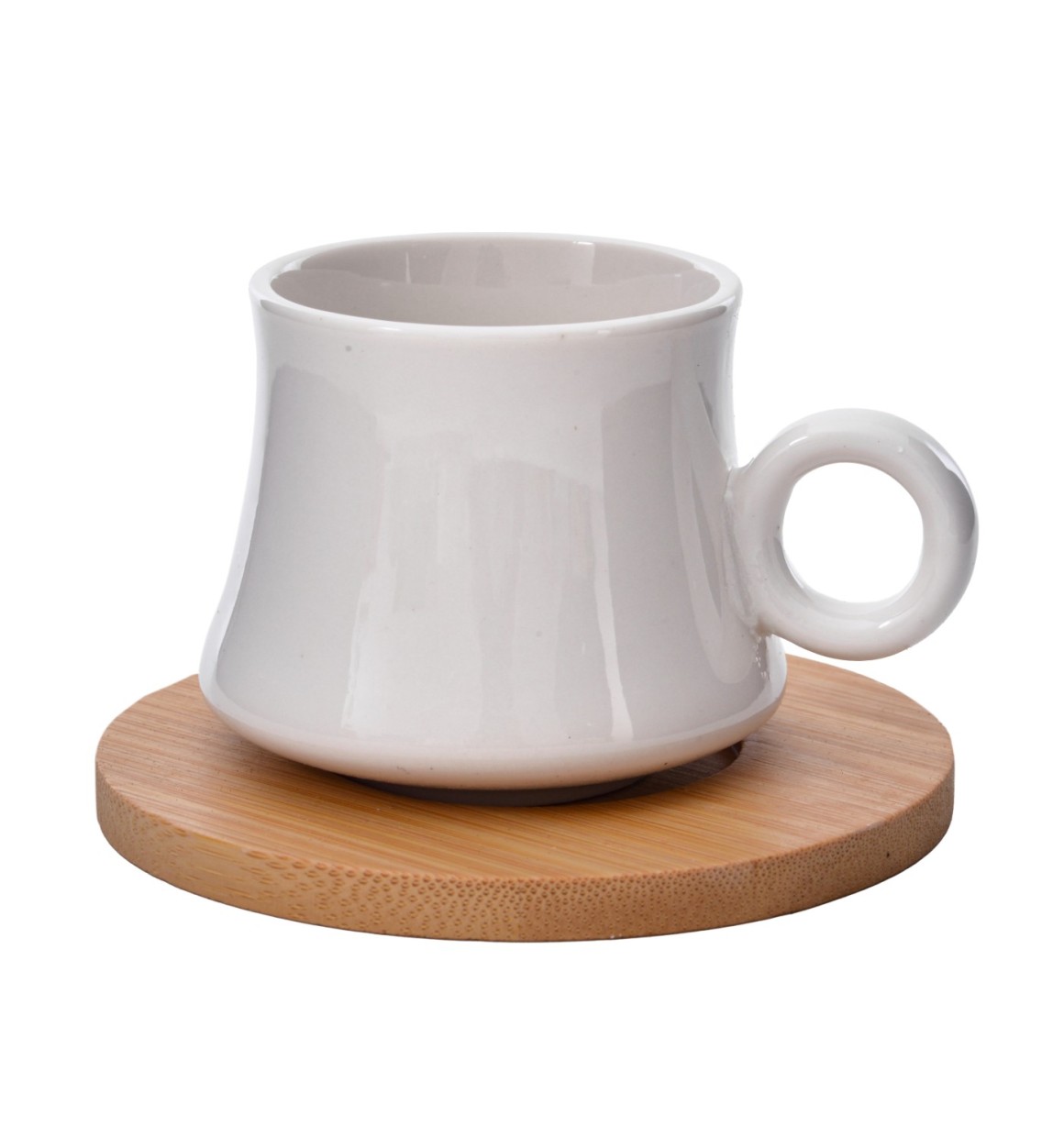 Conjunto de Xícaras Porcelana com Pires Bambu Nordic 4 Pçs 80ml