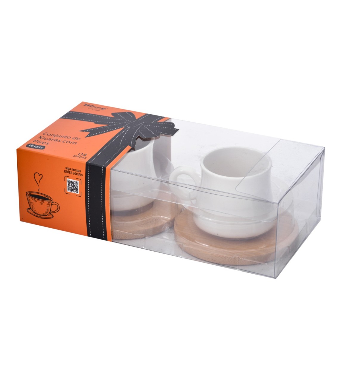 Conjunto de Xícaras Porcelana com Pires Bambu Nordic 4 Pçs 80ml