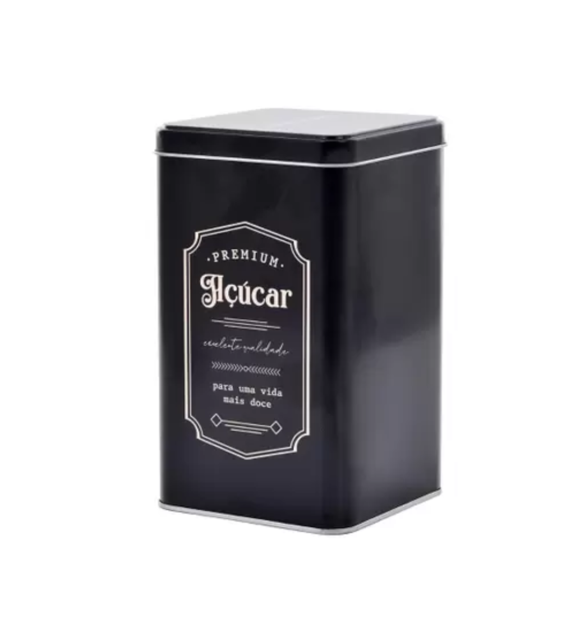 Lata de Açucar Retrô Preto 10,5x18,5cm