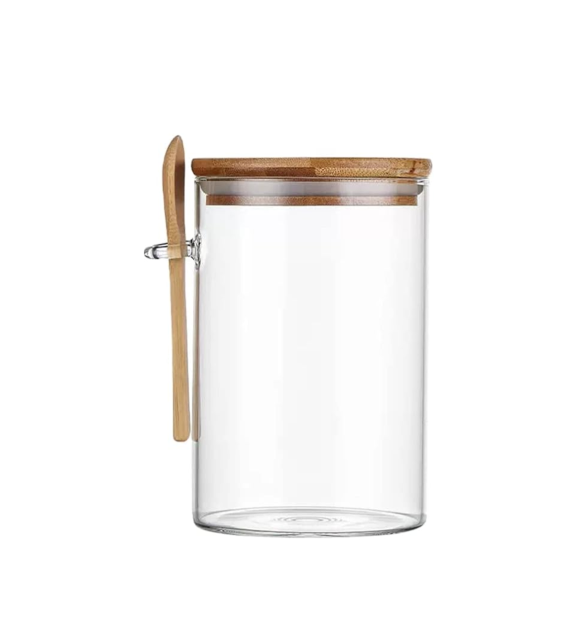 Praticidade e estilo na sua cozinha! Adquira o Pote de Vidro com Tampa e Colher de Bambu agora e eleve a experiência de armazenamento.