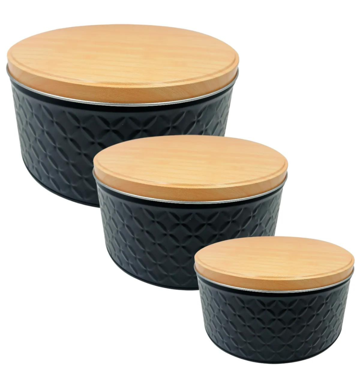 Kit 3 Potes de Metal Redondo com Tampa - Preto