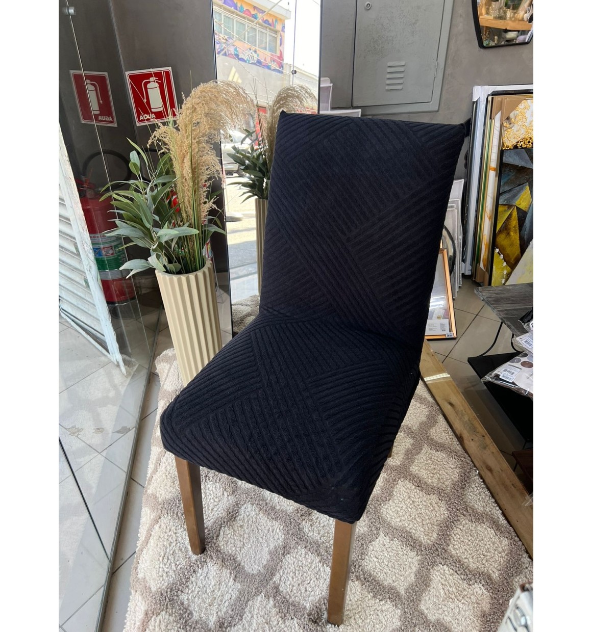 2. Capa de Cadeira Preto Linhas