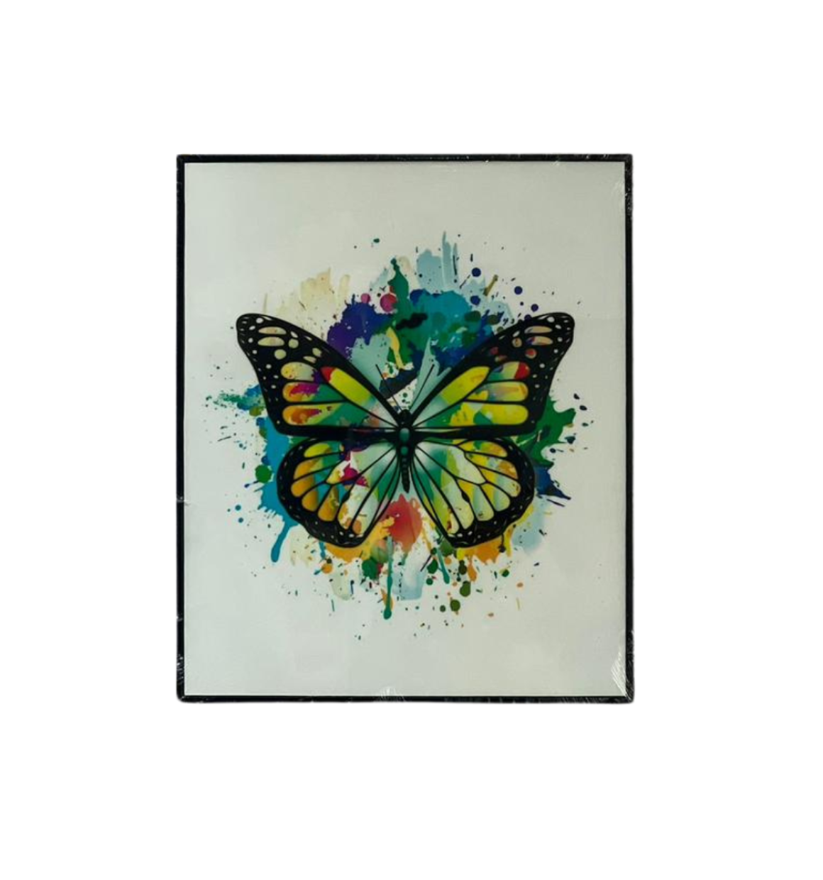 Quadro Borboleta Colorida Acetato MDF - 25cm X 30cm X 1,8cm