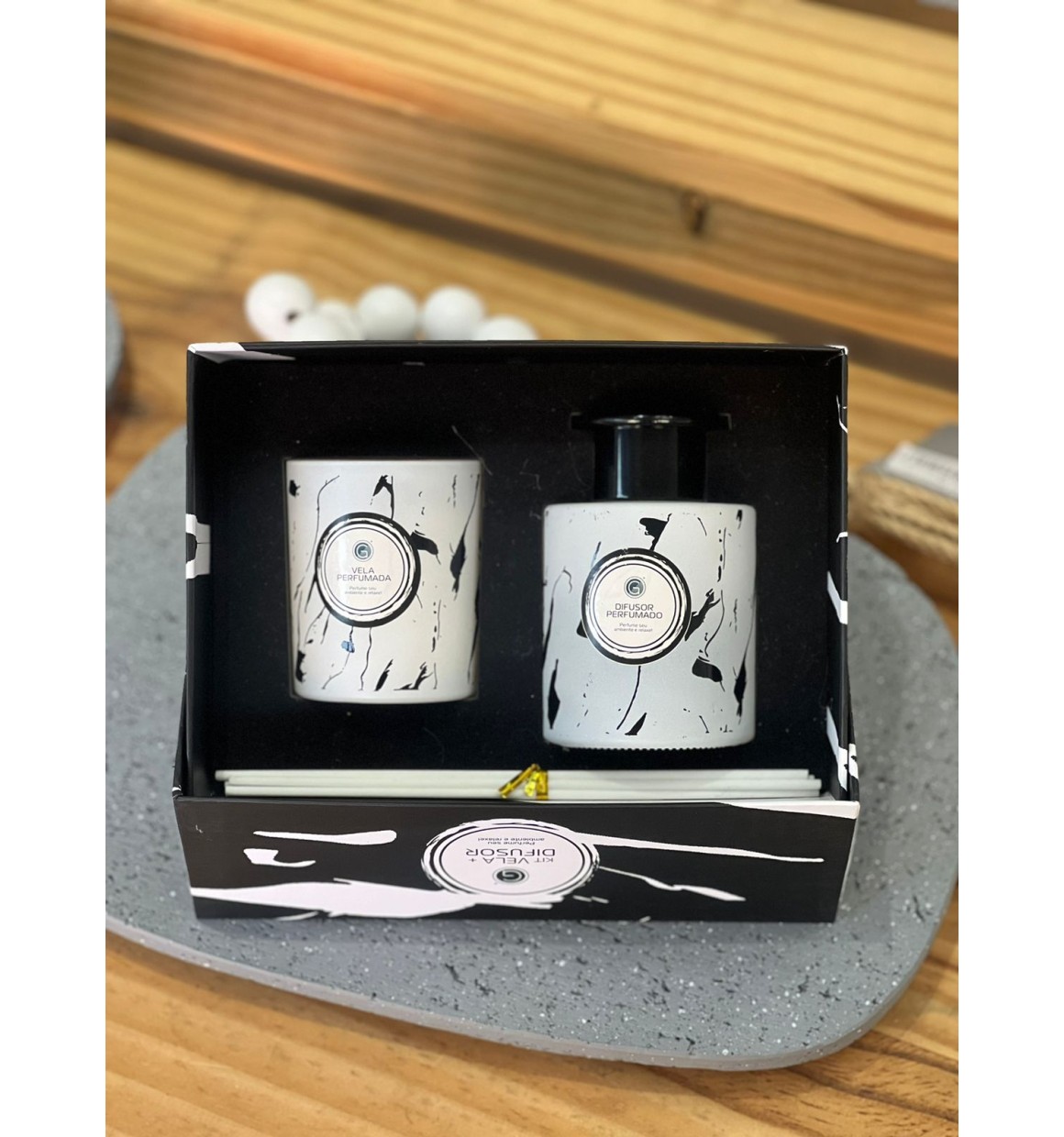 Kit Vela Branca e Difusor de Ambientes Branco - 2 Peças 120ml