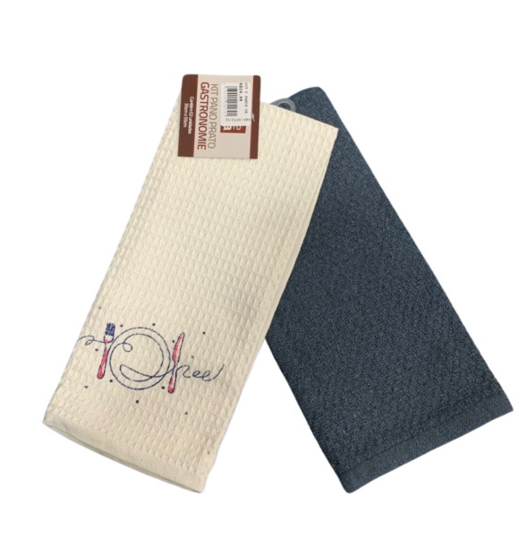 Kit com 2 Panos de Prato Gastronomie - Mod 2 Free Azul