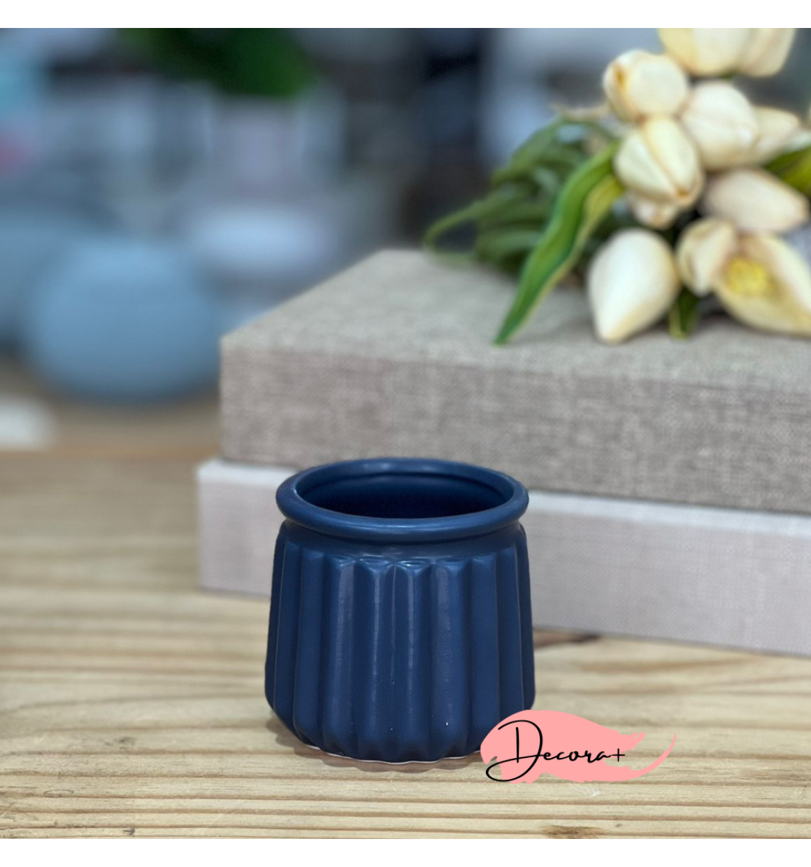 Vaso Canelado de Cerâmica Azul (PQ)- 7,5cm X 7,5cm