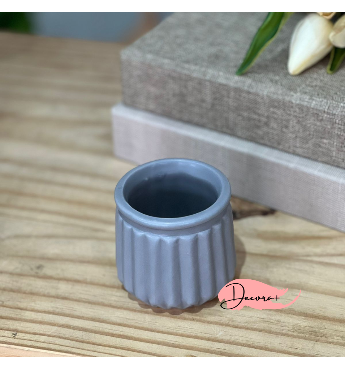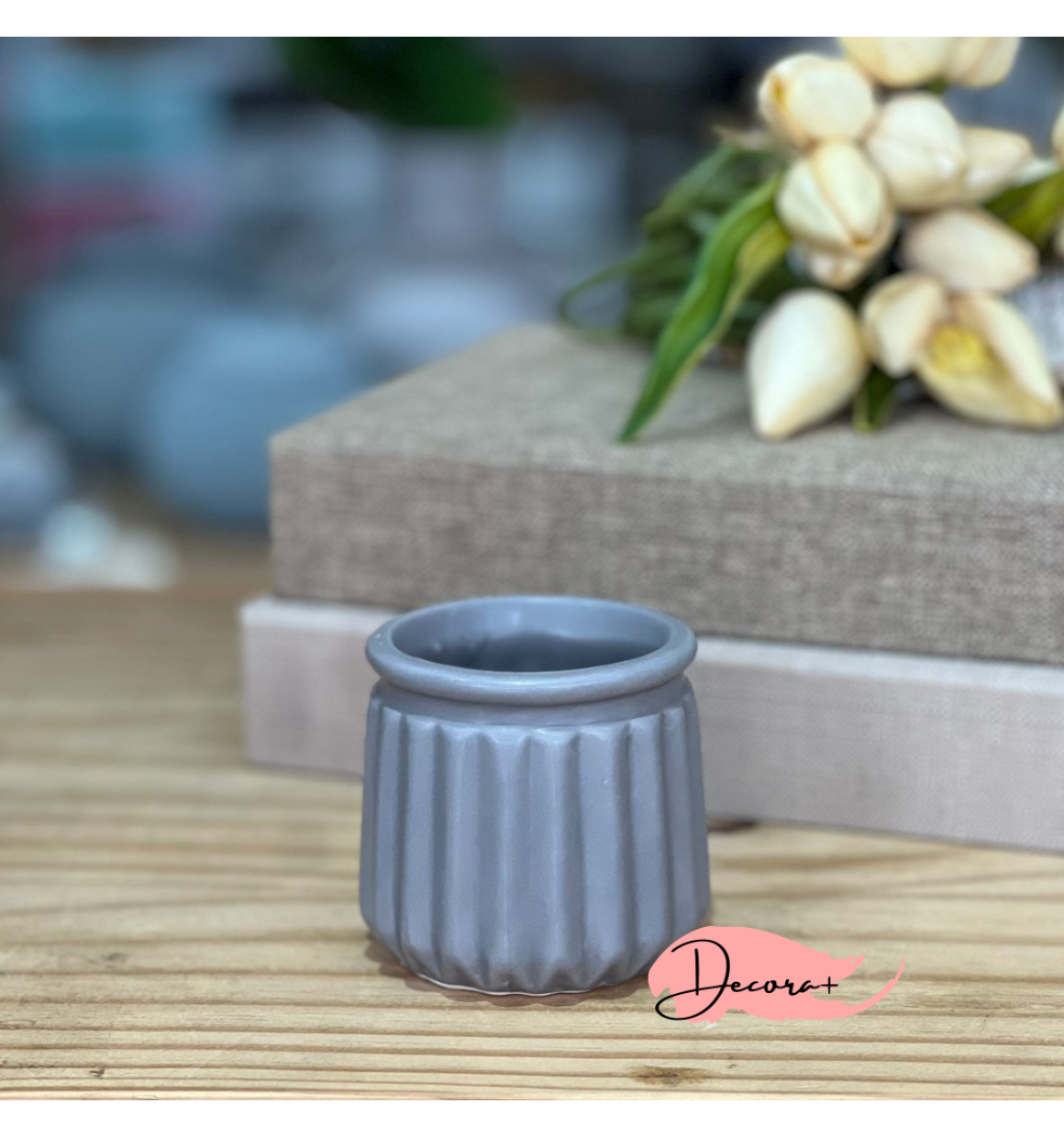Vaso Canelado de Cerâmica Cinza (PQ)- 7,5cm X 7,5cm