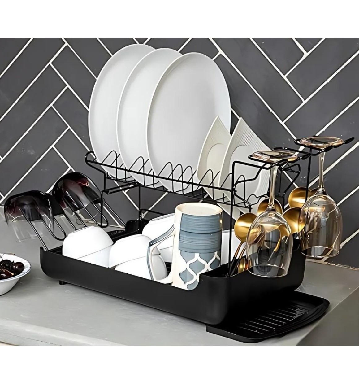 Ganhe mais espaço na bancada com o Escorredor 2 Andares de Inox. Com dois níveis e bandeja plástica removível, é ideal para quem busca organização e praticidade no dia a dia!