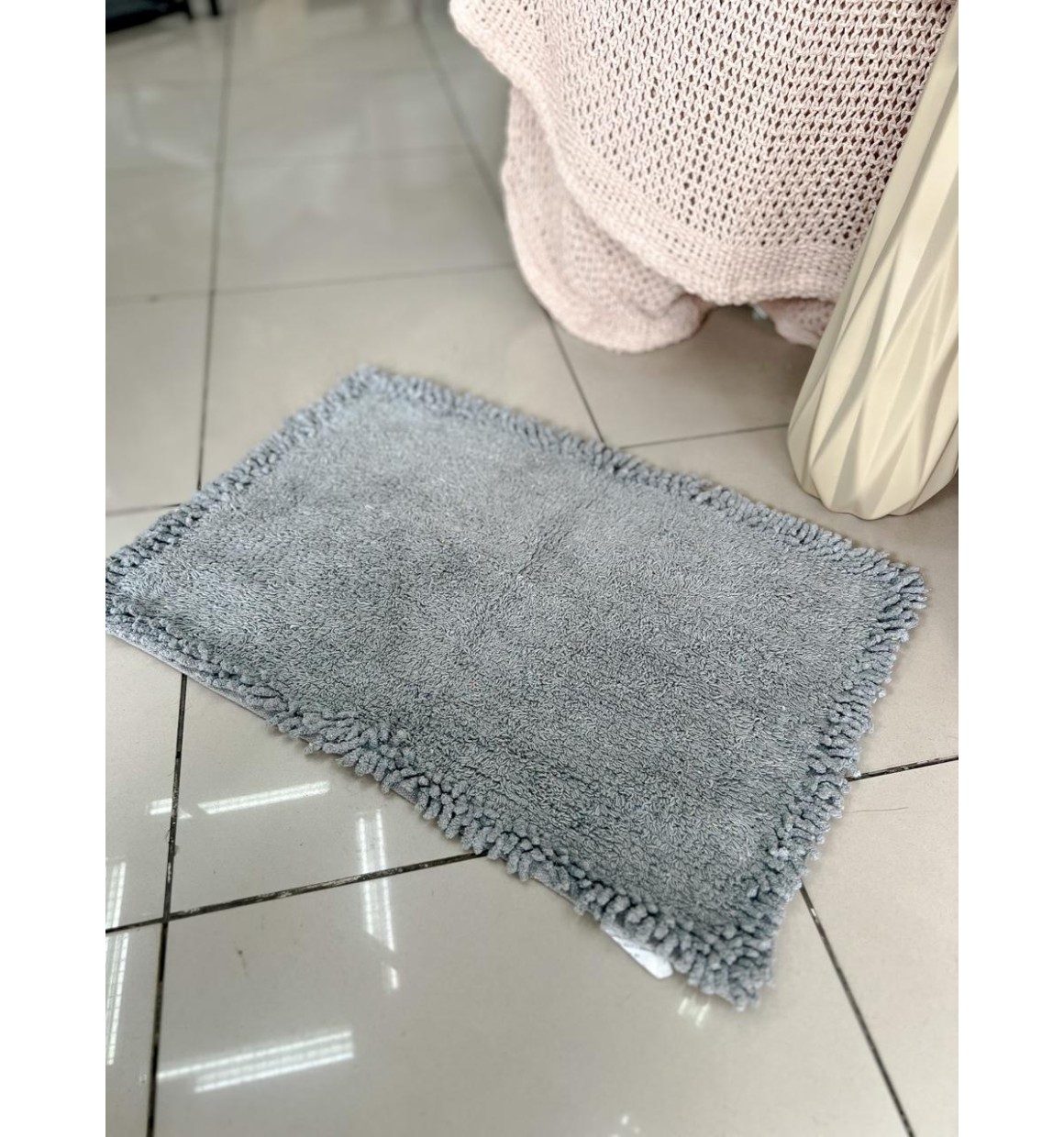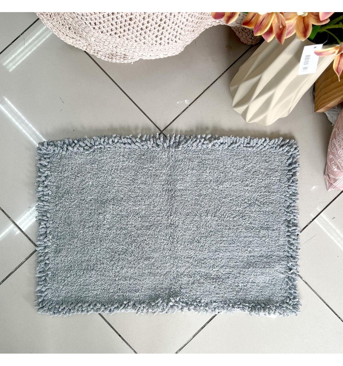 Tapete Borda Regular de Algodão Cinza - 40cm X 60cm