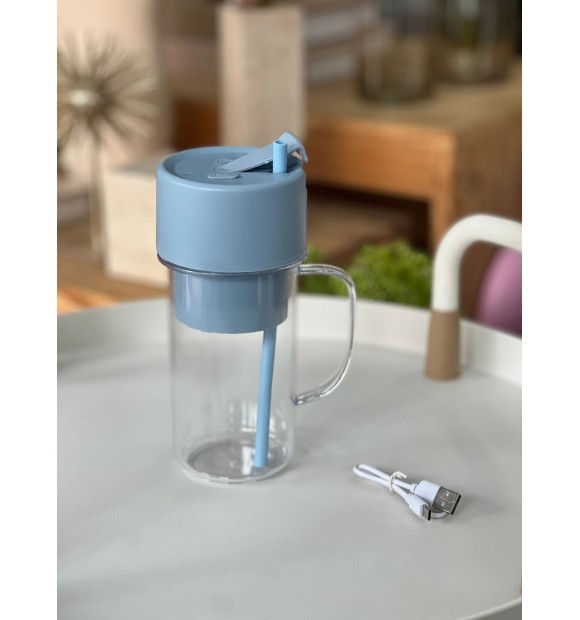 Caneca Mixer de Plástico c/ Cabo USB - Azul 450ml