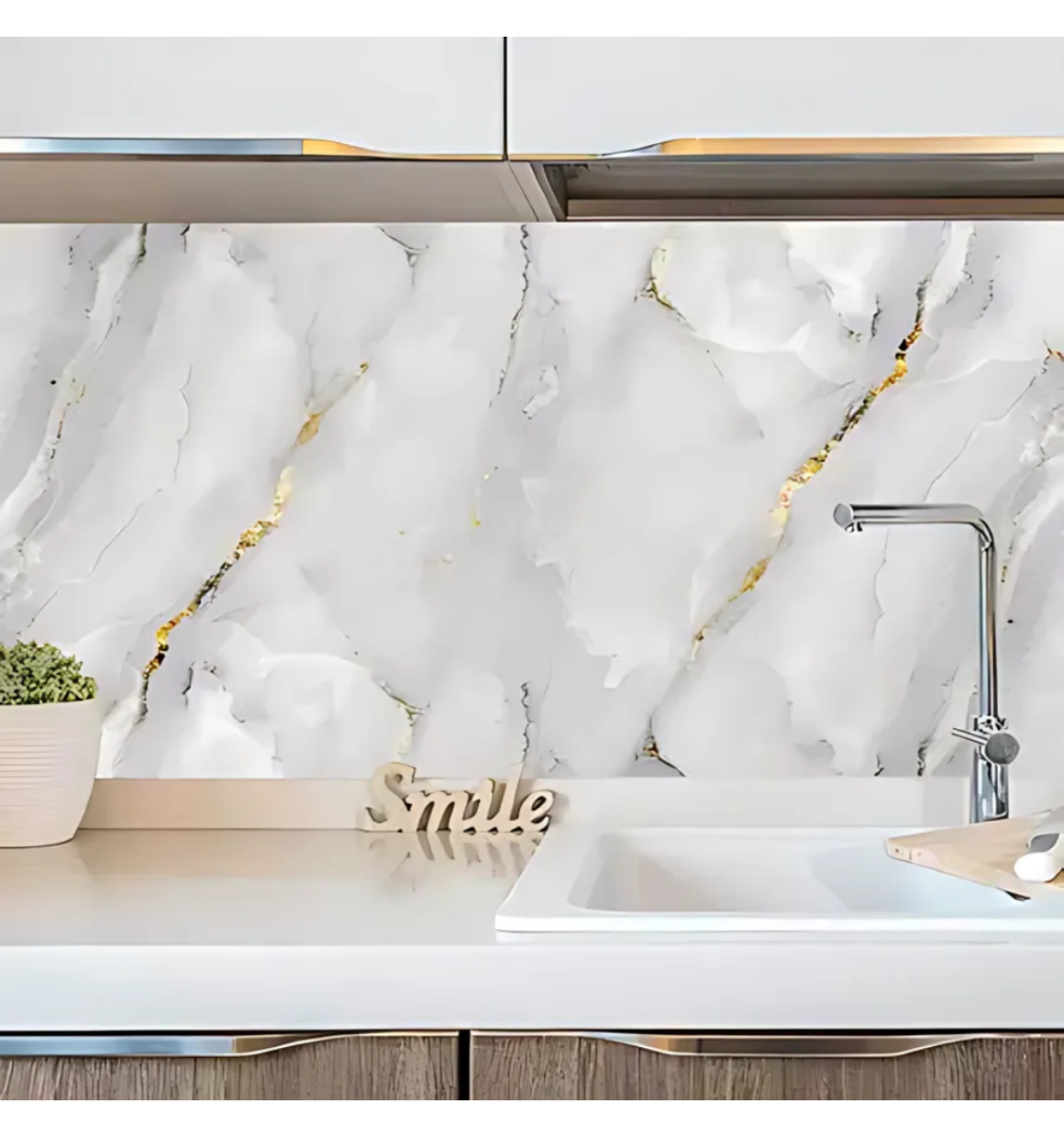 Papel de Parede Marmore Branco C/Dourado 10m X45cm Autoadesivo