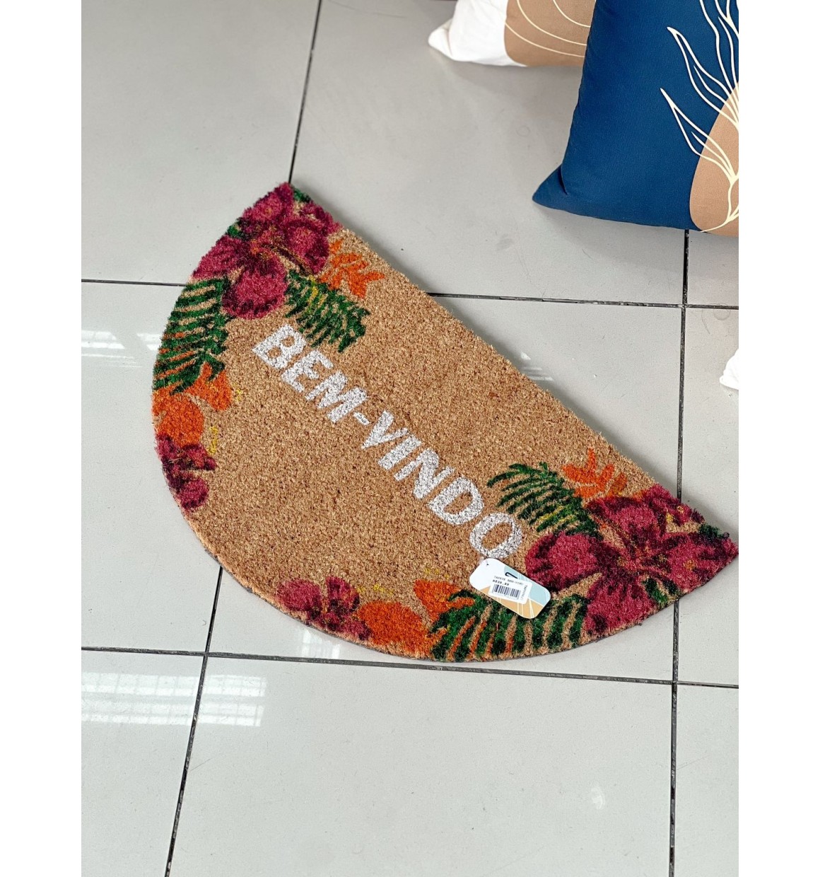 2. Tapete Capacho em Fibra de Côco Meia Lua - Floral 33cm X 60cm