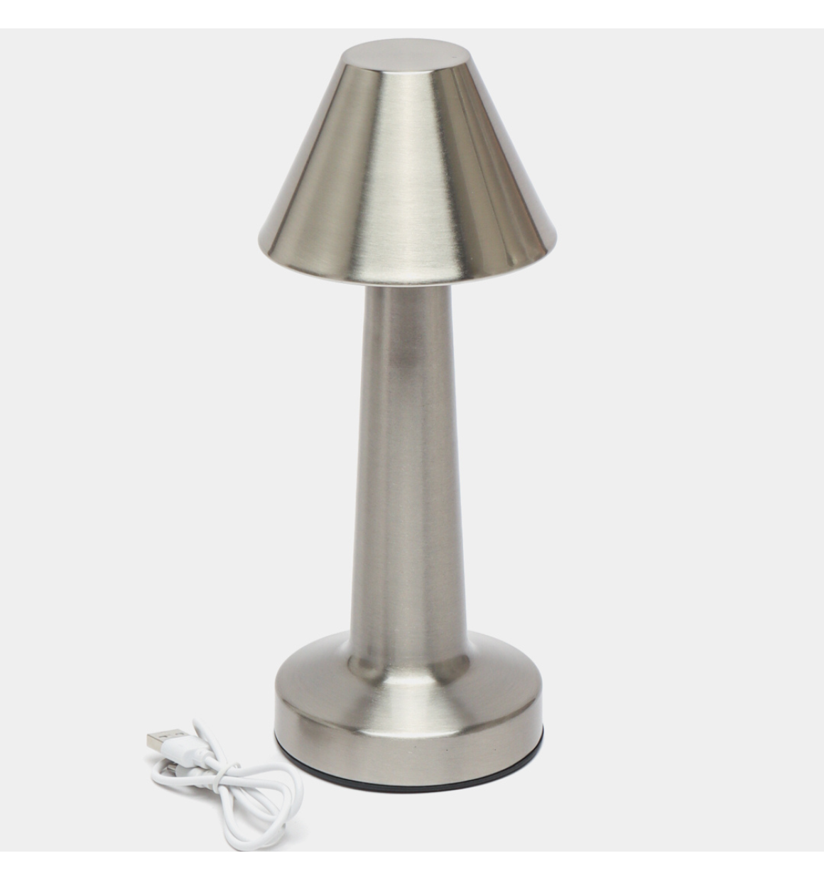 Luminária Cone de Led Prata Recarregavel c/ Cabo Usb - Touch Screen