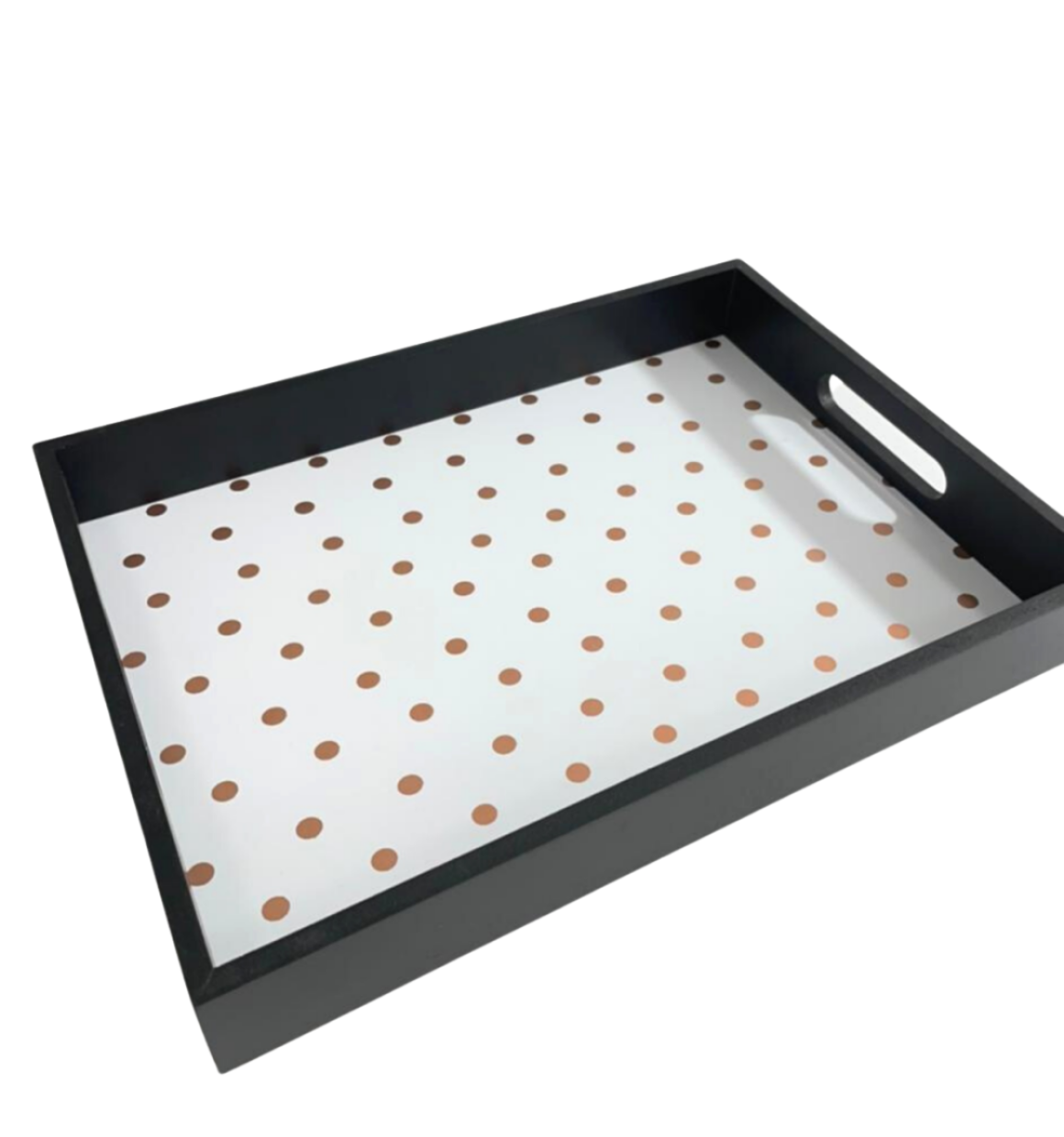 Bandeja "Bolinha Dourado" Decorativa De Madeira