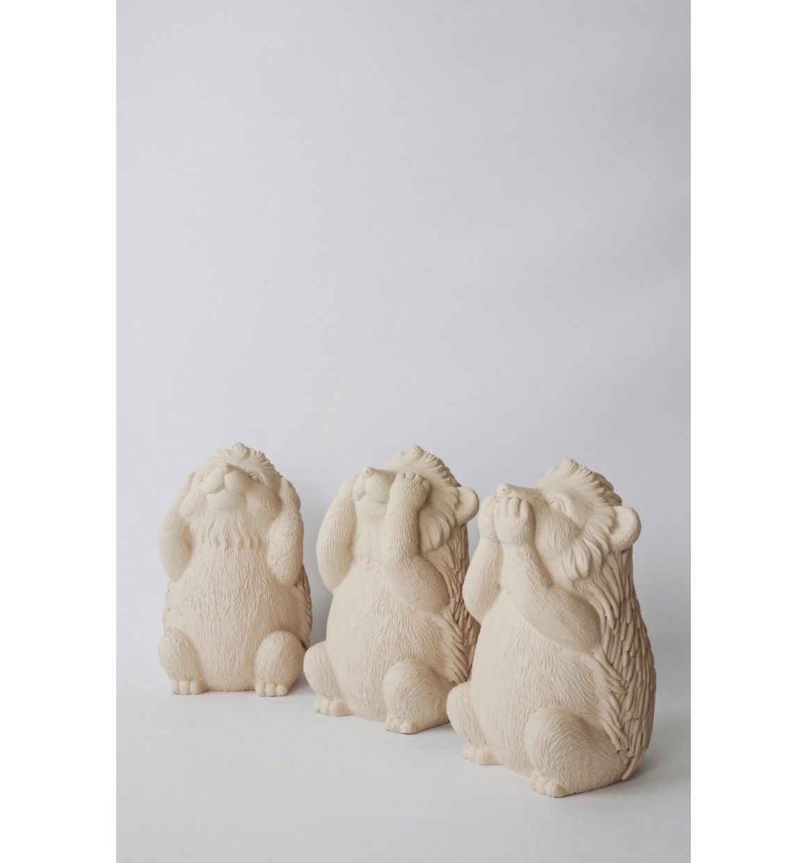 Produzido em cimento, este kit vem com três peças com design diferenciado em forma de porco espinho. Um tapando os olhos, outro os ouvidos e o terceiro a boca. Perfeito para decorar seu escritório, sala, cozinha, área gourmet e muito mais com muita energia positiva! e, de uma forma divertida, faz referência a sabedoria do provérbio japonês: “Não ver o mal, não ouvir o mal, não falar o mal”. Muito inspirador, não? Tudo o que você poderia querer!