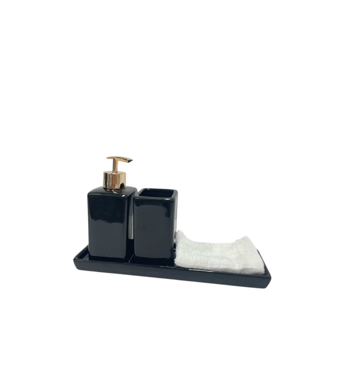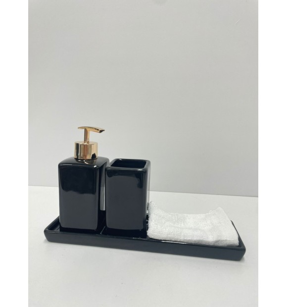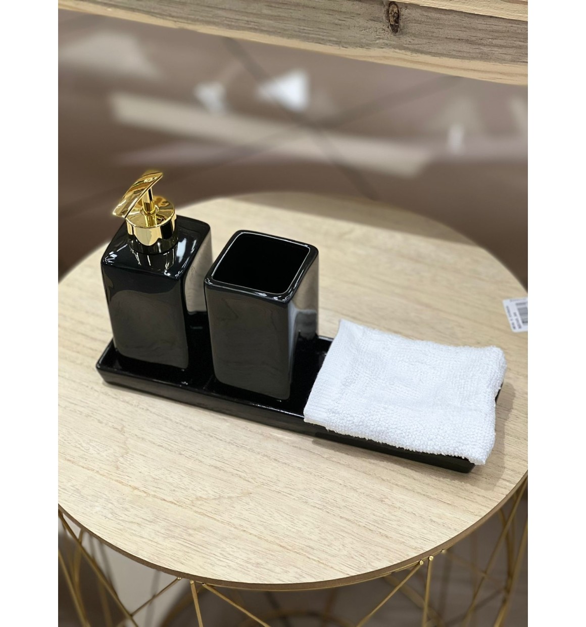 Jogo de Banheiro de Porcelana Preto 4 peças