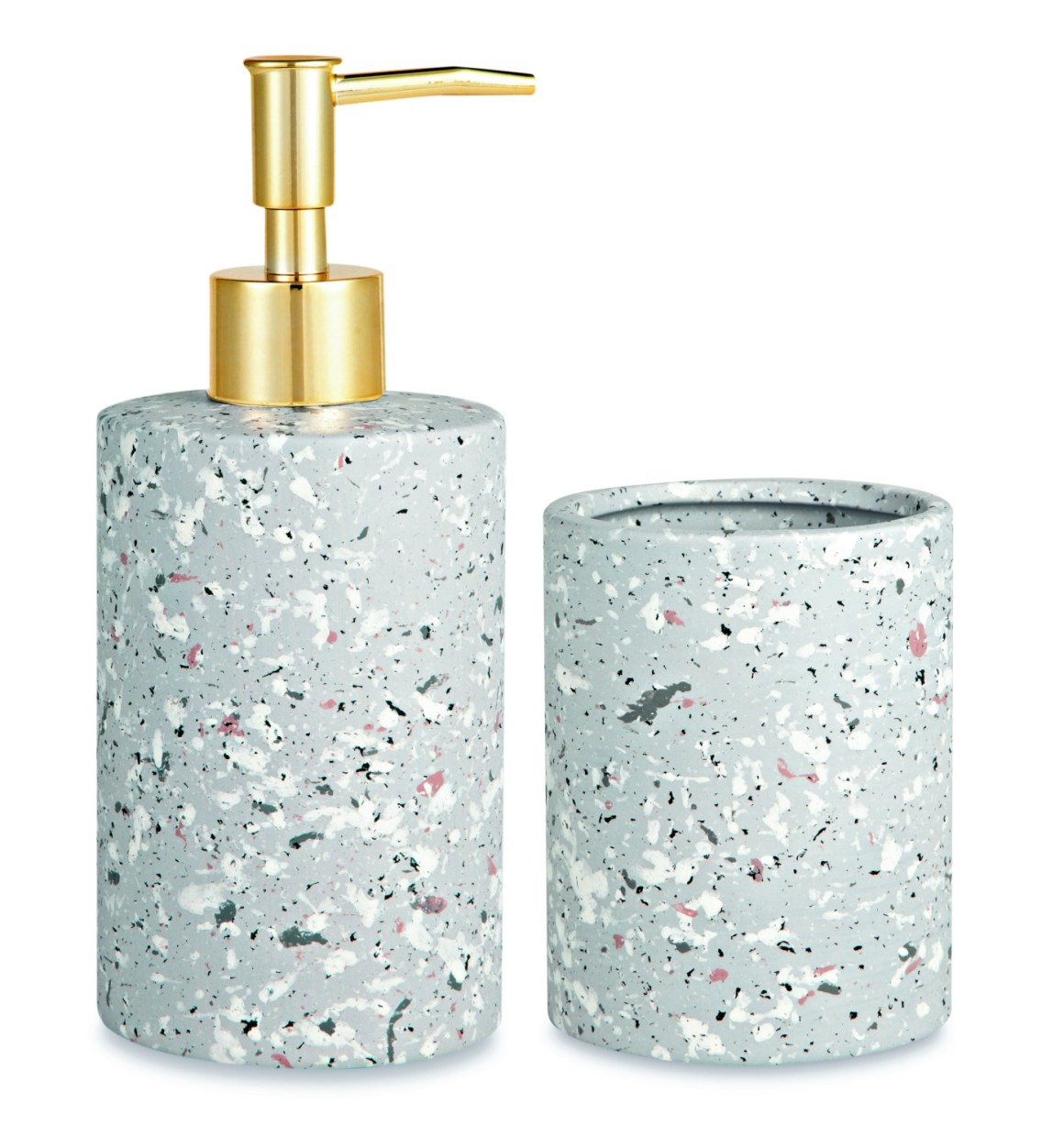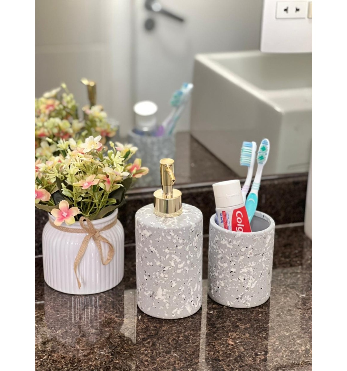 Jogo de Banheiro Cinza Granilite em Ceramica - 2 peças