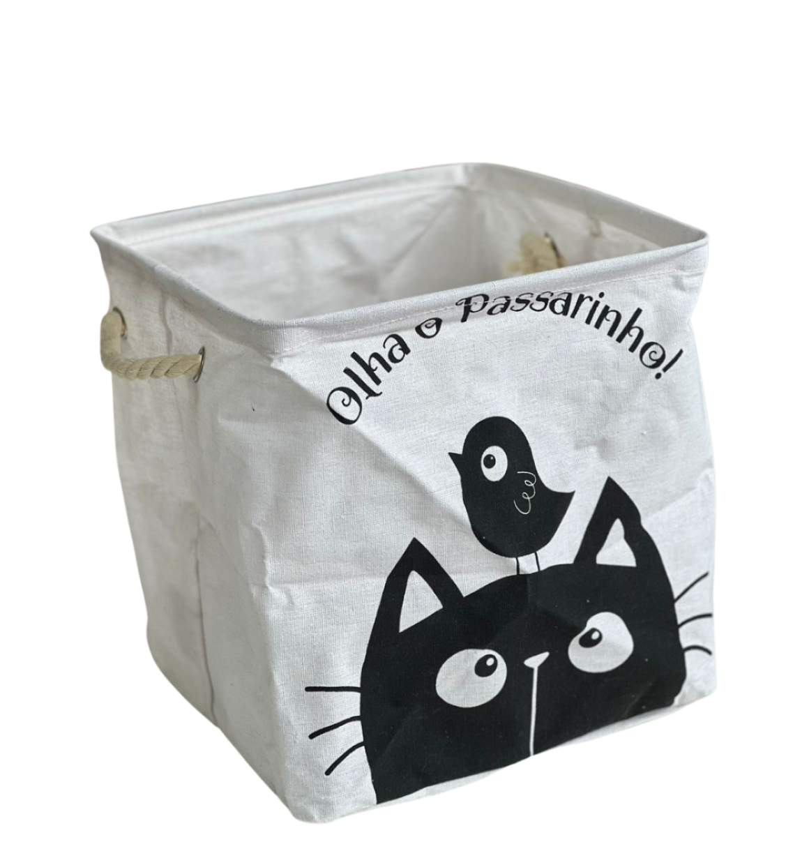 - Cesto Multiuso Infantil Dobravel Quadrado Com Alça sem Tampa - Desenho de "Olha o Passarinho