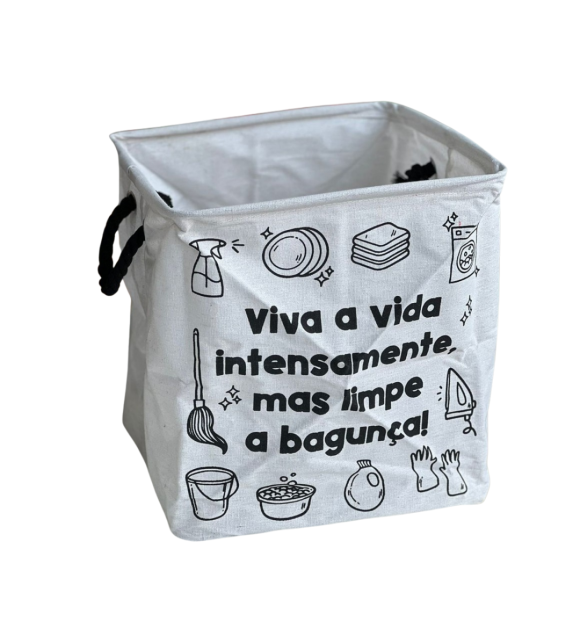 - Cesto Multiuso Dobravel Quadrado Com Alça sem Tampa - Viva a Vida Intensamente, Mas Limpe a Bagunça