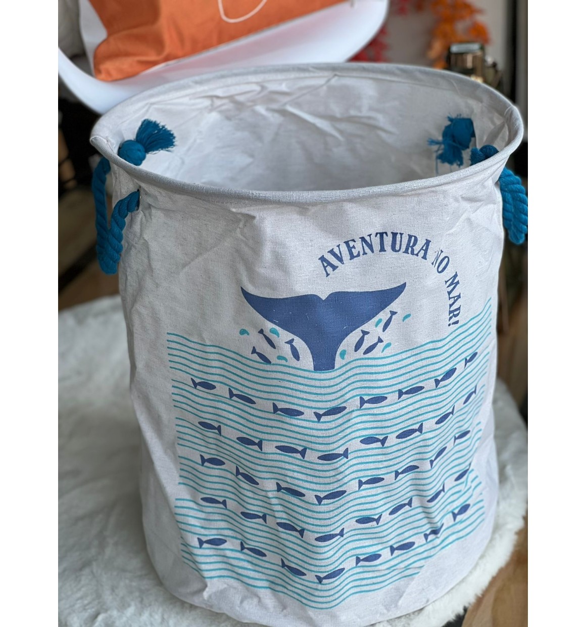 Cesto Multiuso Redondo Infantil Dobravel Com Alça sem Tampa - Rabo de Baleia