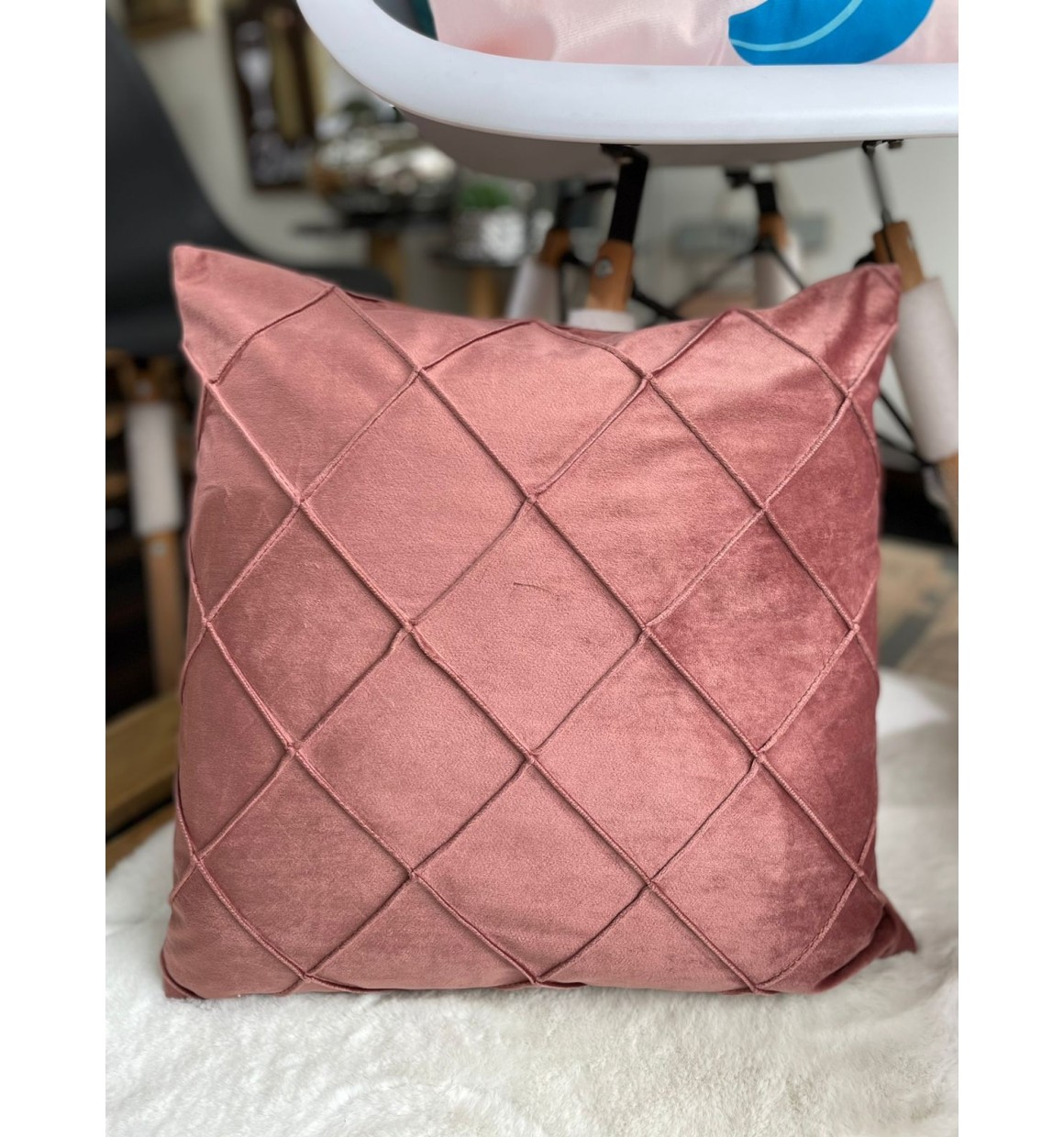 CAPA DE ALMOFADA TECIDO EM CHENILLE COM ACABAMENTO EM QUADRADOS COSTURADOS