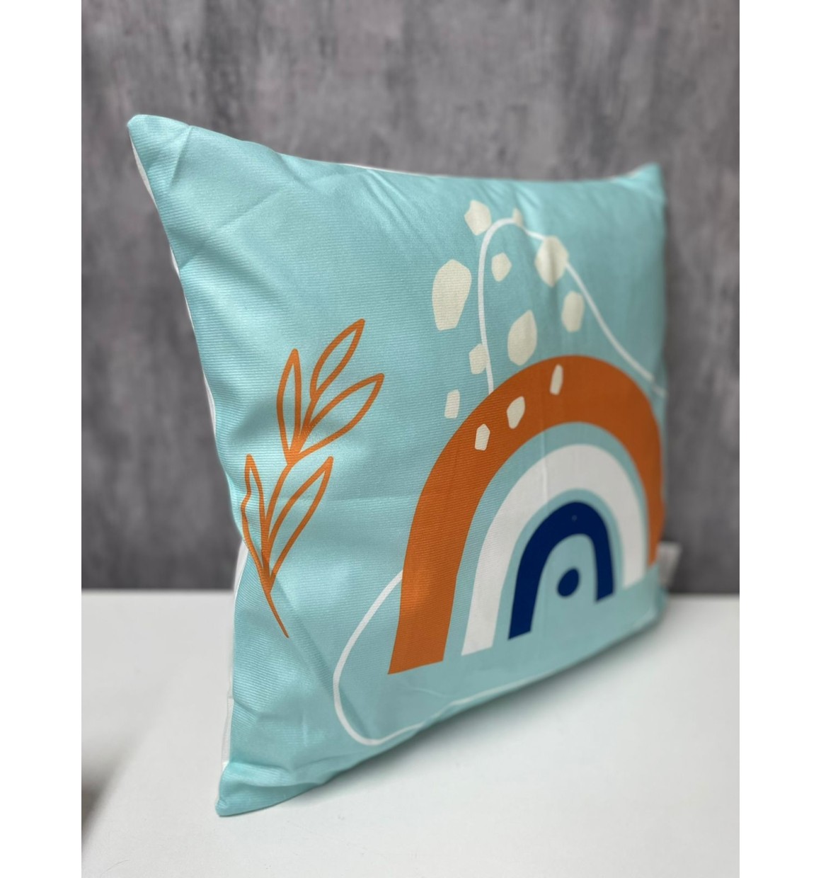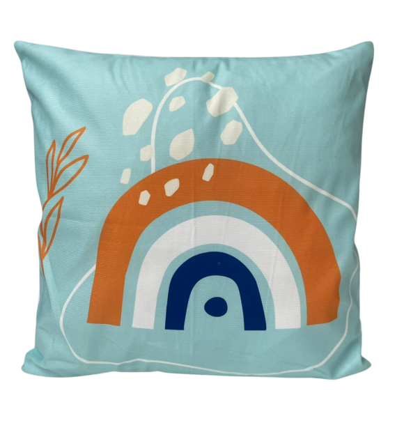 ESTAMPA: DESENHO DE ARCO IRIS NAS CORES LARANJA, AZUL E BRANCO