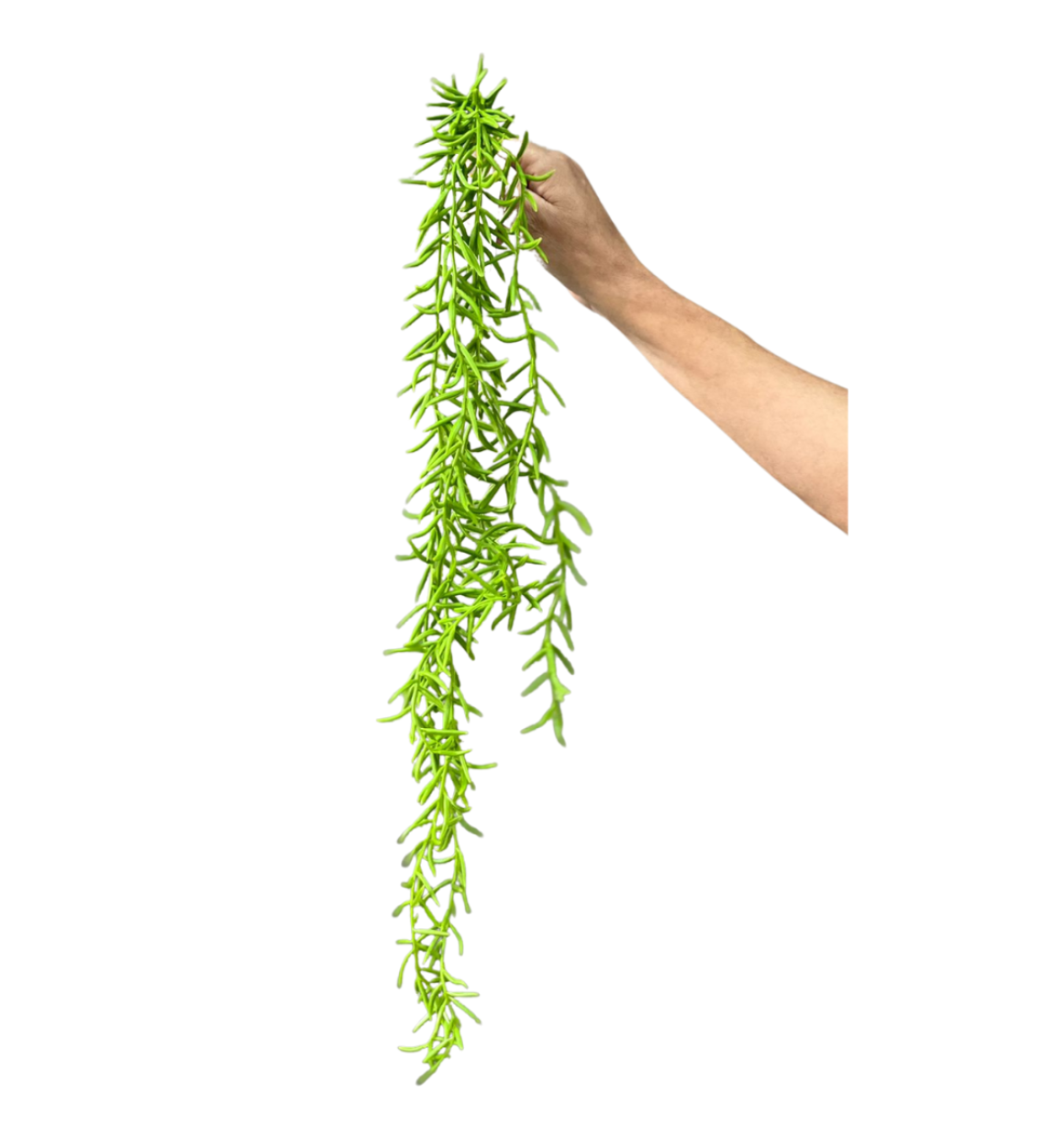 Folhagem Pendente Suculenta na cor verde. Planta muito detalhada, preenche vasos e cachepots proporcionando aspecto diferente para essas peças, mais elegância e charme, além de uma sensação de leveza e natureza.