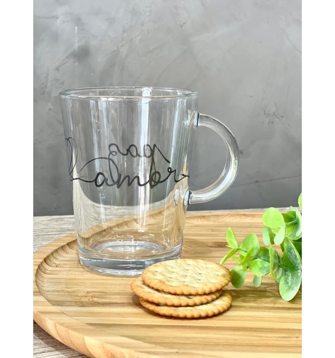 Caneca de Vidro "Paz/amor " Linha Comemorare Black