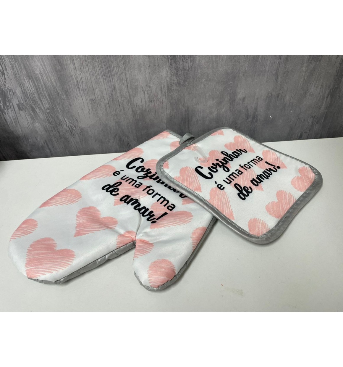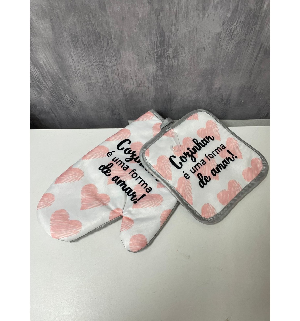 Luva Térmica e Descanso de Panela "Cozinhar é Uma Forma de Amar" Para Cozinhar.