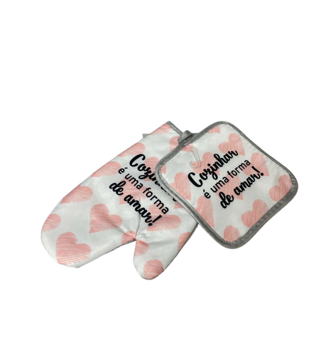 Luva Térmica e Descanso de Panela "Cozinhar é Uma Forma de Amar" Para Cozinhar