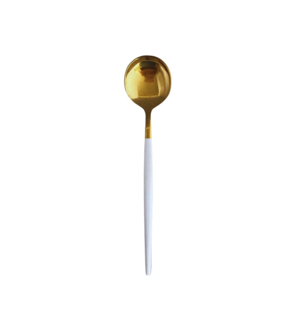 Adicione um pouco de brilho à decoração da sua mesa com a coleção de talheres ouro . Você entrará imediatamente no clima de festa com esses talheres dourados. Este conjunto de talheres de ouro contém 6 colheres de sopa e pode ser facilmente combinado com os outros talheres da série Gold. A colher de ouro é feita de aço inoxidável e tem cabos de cor azul. Graças a este design moderno e elegante, o conjunto de colheres é uma adição festiva e bonita aos seus talheres. Para conservar o brilho por mais tempo, recomendamos lavar os talheres à mão. Veja todas as colheres e talheres em nossa loja virtual!