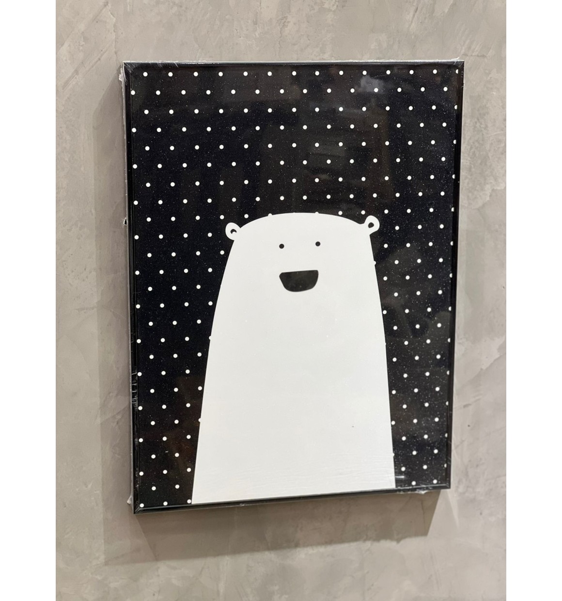 Quadro Decorativo "Urso Polar com Bolinhas" 30cmX40cm.