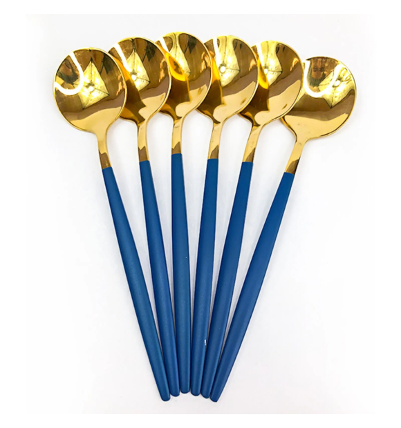 Jogo com 6 Colheres de Chá Slim Cabo Azul.