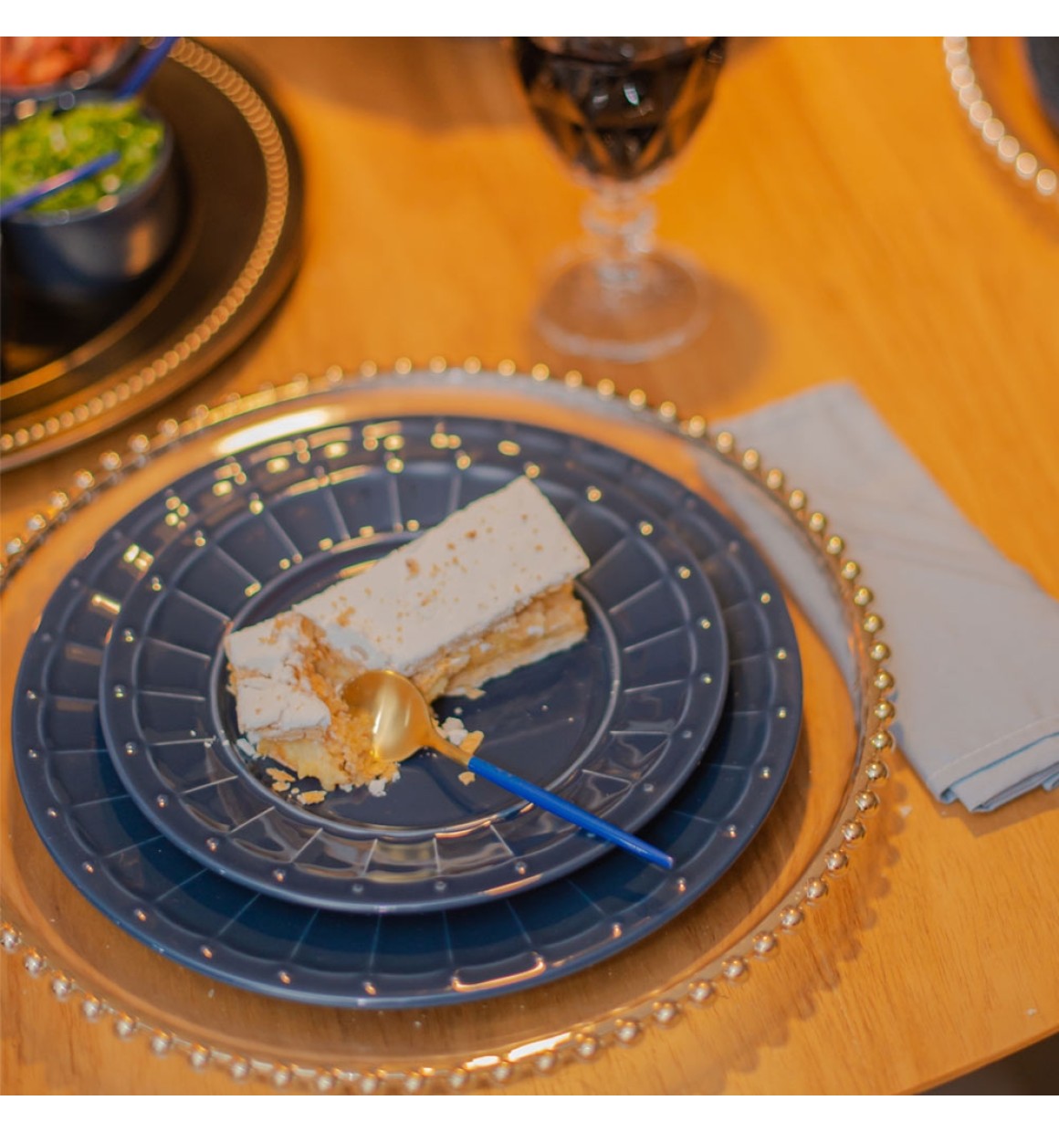 Adicione um pouco de brilho à decoração da sua mesa com a coleção de talheres ouro . Você entrará imediatamente no clima de festa com esses talheres dourados. Este conjunto de talheres de ouro contém 6 colheres de sopa e pode ser facilmente combinado com os outros talheres da série Gold. A colher de ouro é feita de aço inoxidável e tem cabos de cor azul. Graças a este design moderno e elegante, o conjunto de colheres é uma adição festiva e bonita aos seus talheres. Para conservar o brilho por mais tempo, recomendamos lavar os talheres à mão. Veja todas as colheres e talheres em nossa loja virtual!