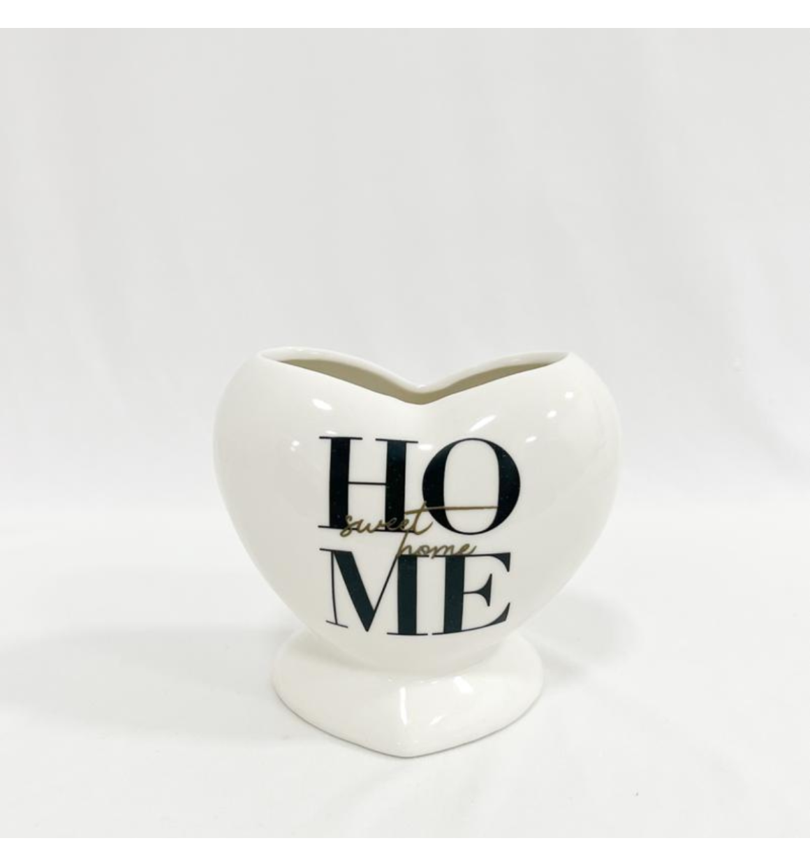Lindo vaso em formato de coração, com frase "Home Sweet Home", conferindo um ar fofo e romântico na decoração da sua casa!Pode ser usado para colocar flores permanentes, suculentas permanentes, como porta pincéis, como porta talheres... basta usar a imaginação, pois é uma peça super versátil.